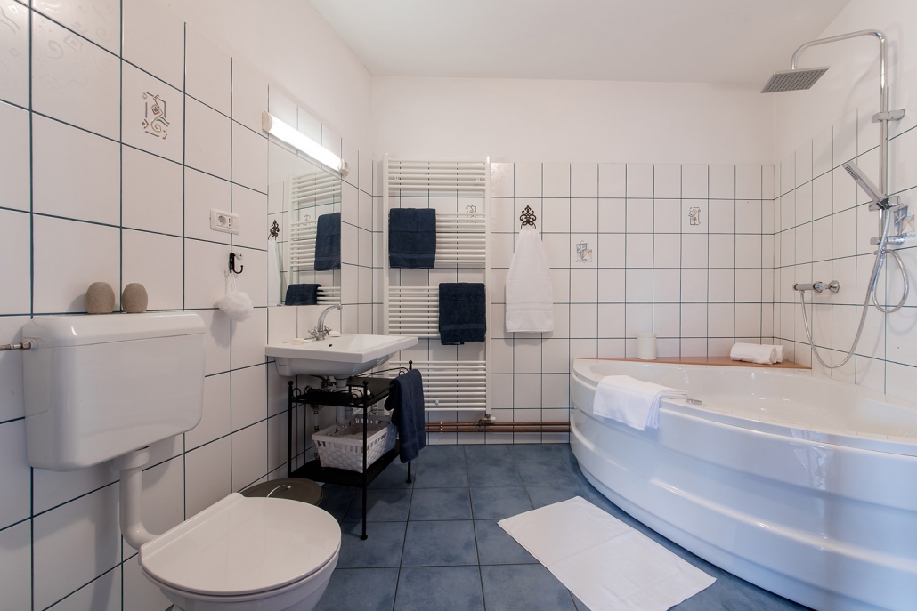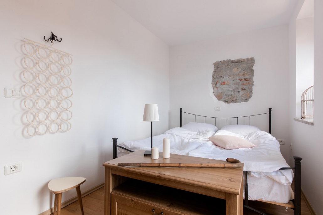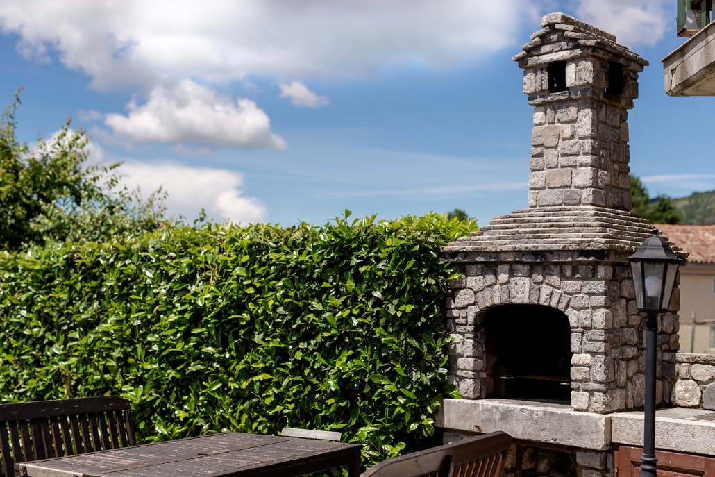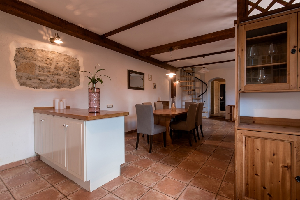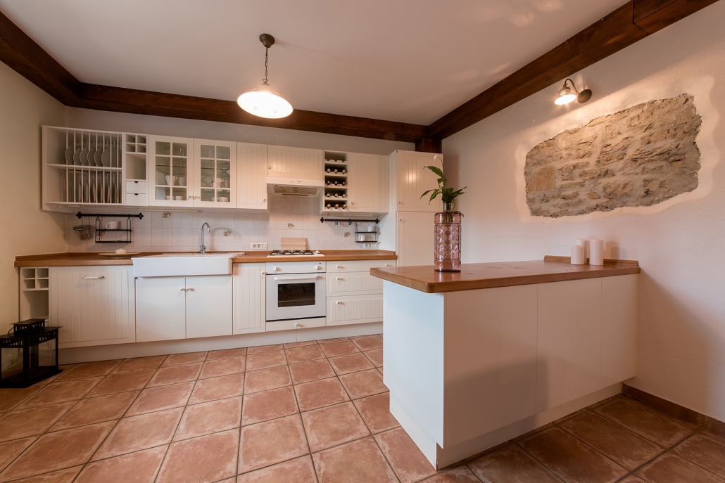 Je tradicionalna hiša s tipično opečnato streho, tipično kraško kletjo, »štirno«, moderen pridih ji daje zunanji bazen, savna in jacuzzi.